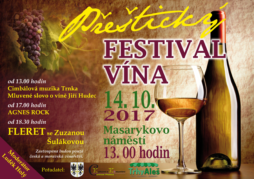 Ve spolupráci s Kulturním a komunitním centrem Přeštice uskutečníme v sobotu 14. října premiérový ročník Přeštického festivalu vína. Soupiska vinařství je již zcela zaplněna, aktuálně hledáme prodejce občerstvení. V případě zájmu nás neváhejte kontaktovat.