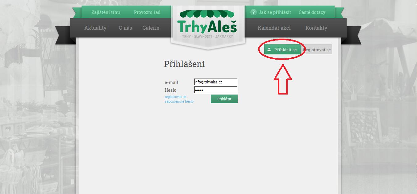 Po aktivaci Vašeho uživatelského účtu administrátorem se Vám zpřístupní možnost rezervování prodejních míst. Než budete chtít provádět rezervace, musíte se přihlásit ke svému uživatelskému účtu.